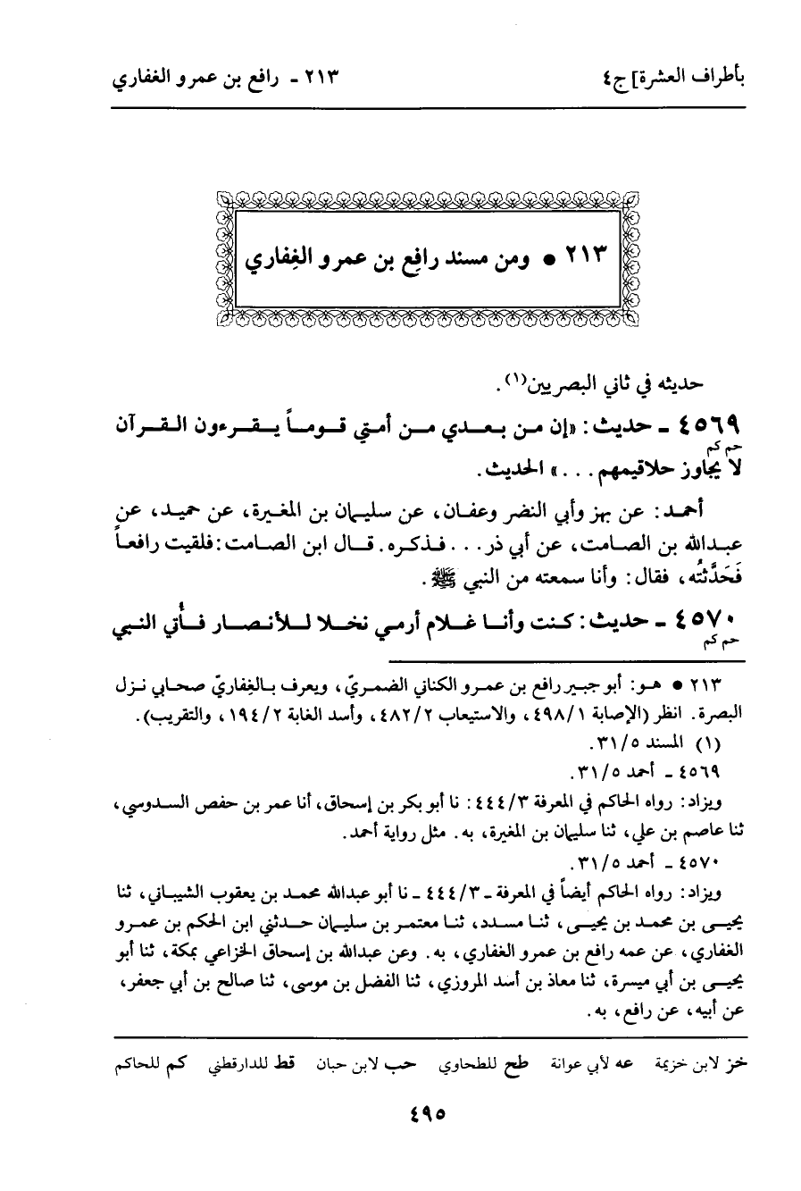 213 ـ وَمِنْ مُسْنَدِ رَافِعِ بْنِ عَمْرٍو الْغِفَارِيِّ