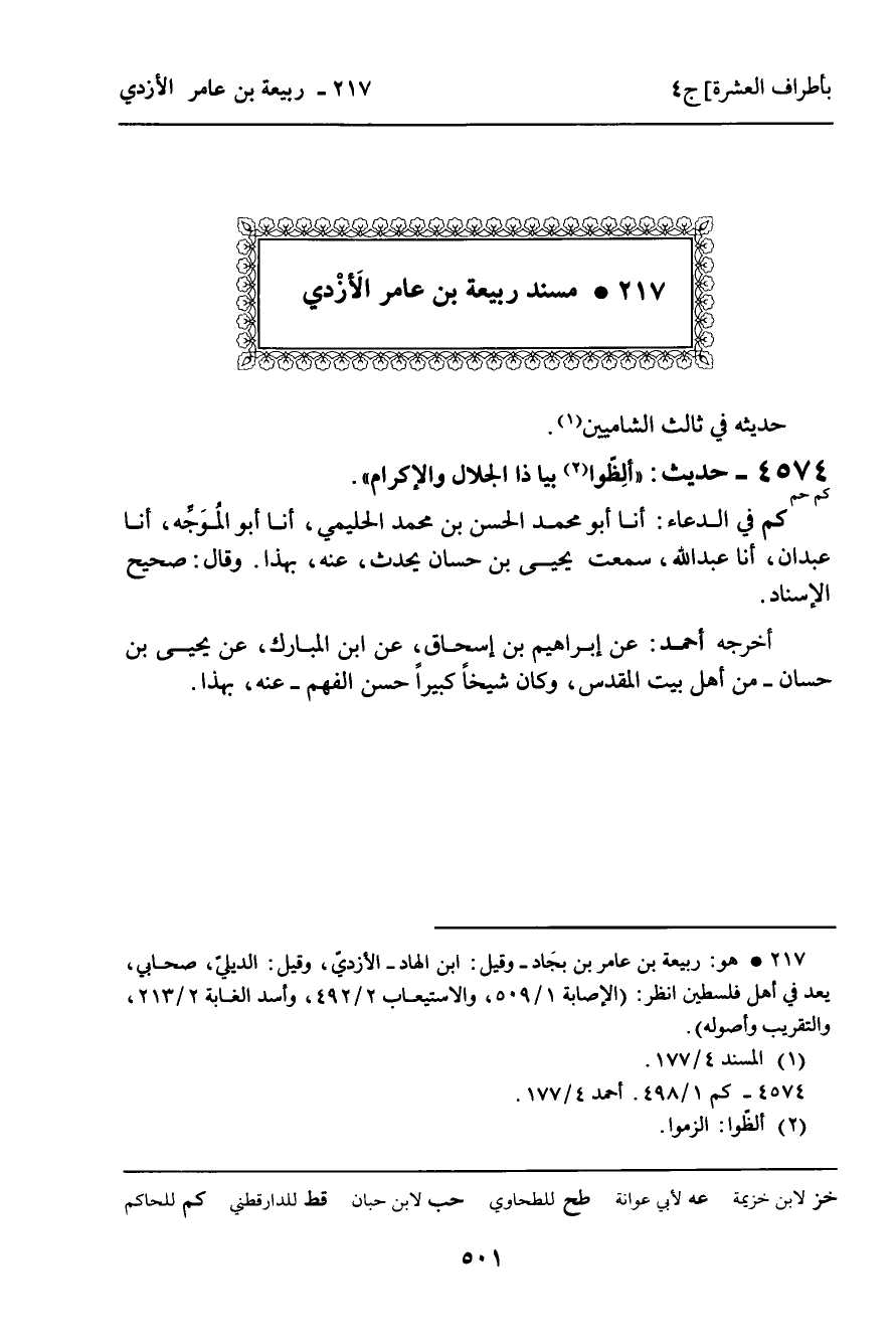 217 ـ مُسْنَدُ رَبِيعَةَ بْنِ عَامِرٍ الأَزْدِيِّ