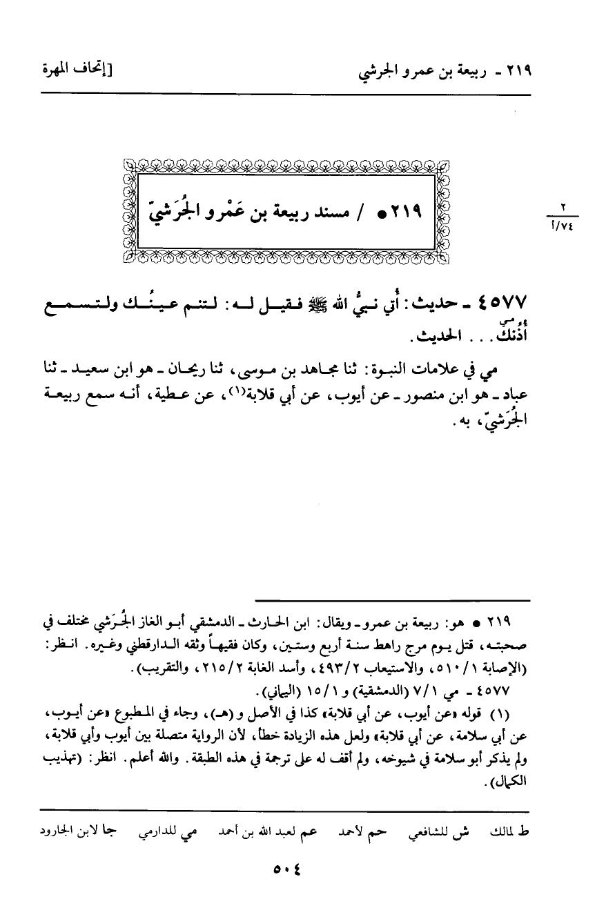 219 ـ مُسْنَدُ رَبِيعَةَ بْنِ عَمْرٍو الْجُرَشِيِّ