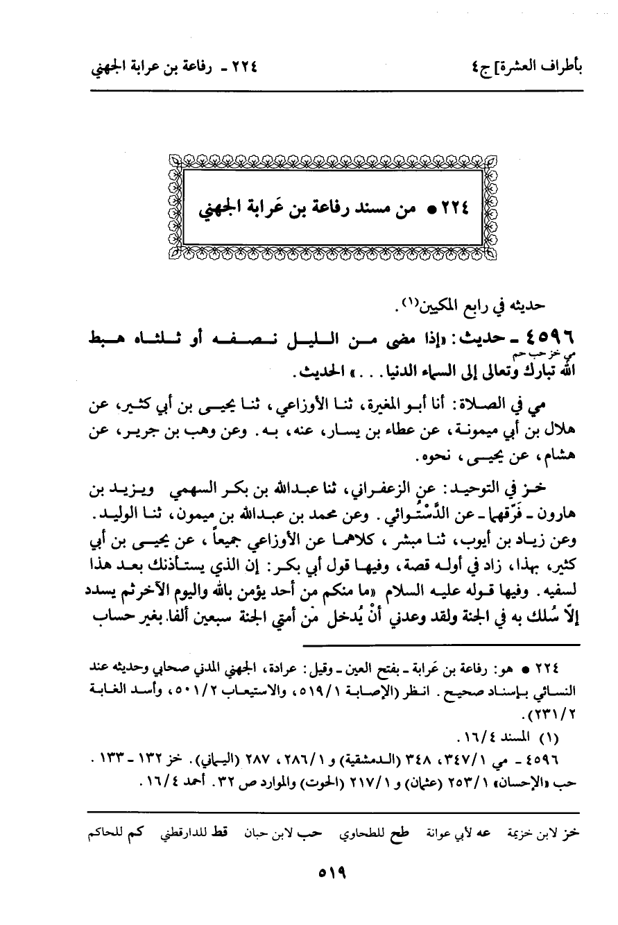 224 ـ مِنْ مُسْنَدِ رِفَاعَةَ بْنِ عَرَابَةَ الْجُهَنِيِّ