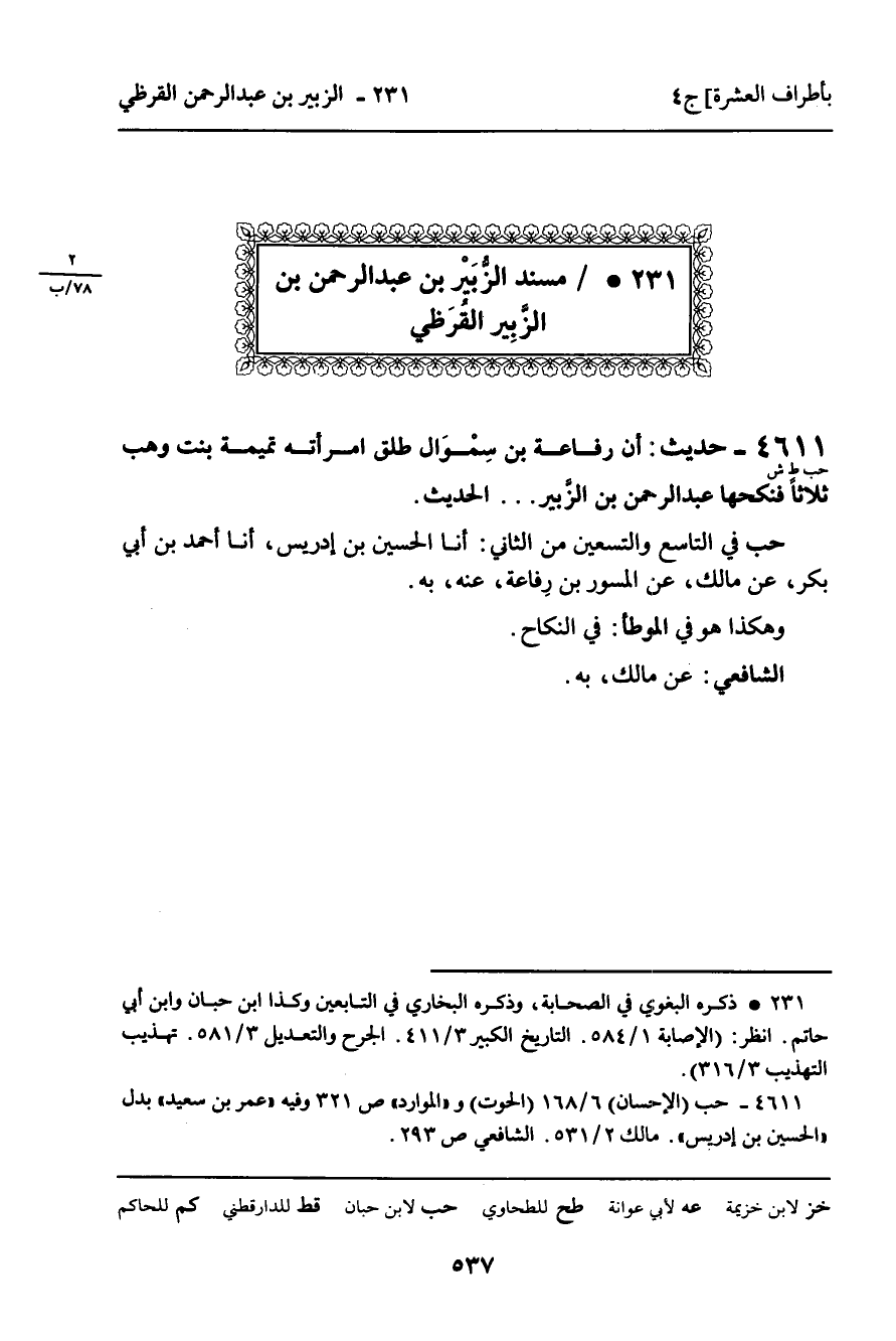 231 ـ مُسْنَدُ الزُّبَيْرِ بْنِ عَبْدِ الرَّحْمَنِ
