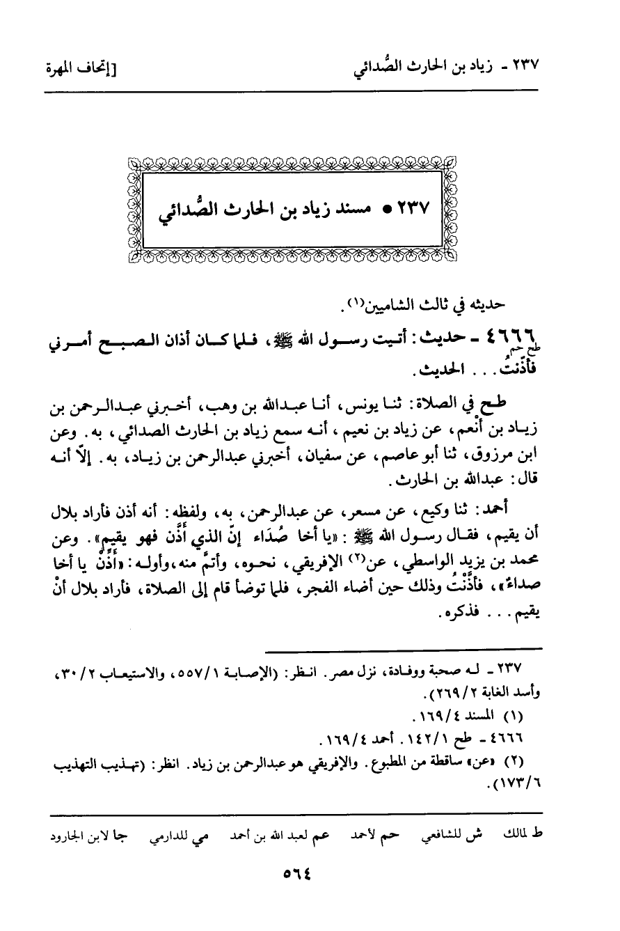 237 ـ مُسْنَدُ زِيَادِ بْنِ الْحَارِثِ الصُّدَائِيِّ