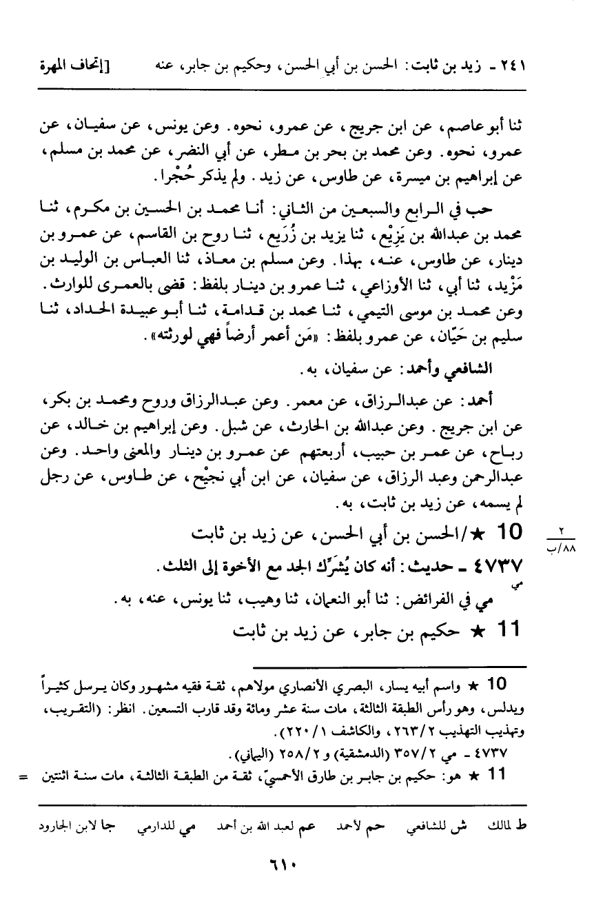 ـ حَكِيمُ بْنُ جَابِرٍ، عَنْ زَيْدِ بْنِ ثَابِتٍ.