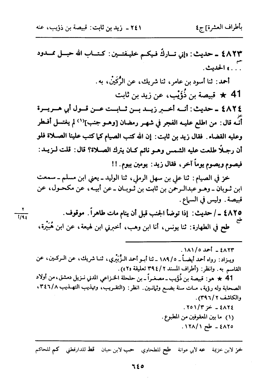 ـ قَبِيصَةُ بْنُ ذُؤَيْبٍ، عَنْ زَيْدِ بْنِ ثَابِتٍ.