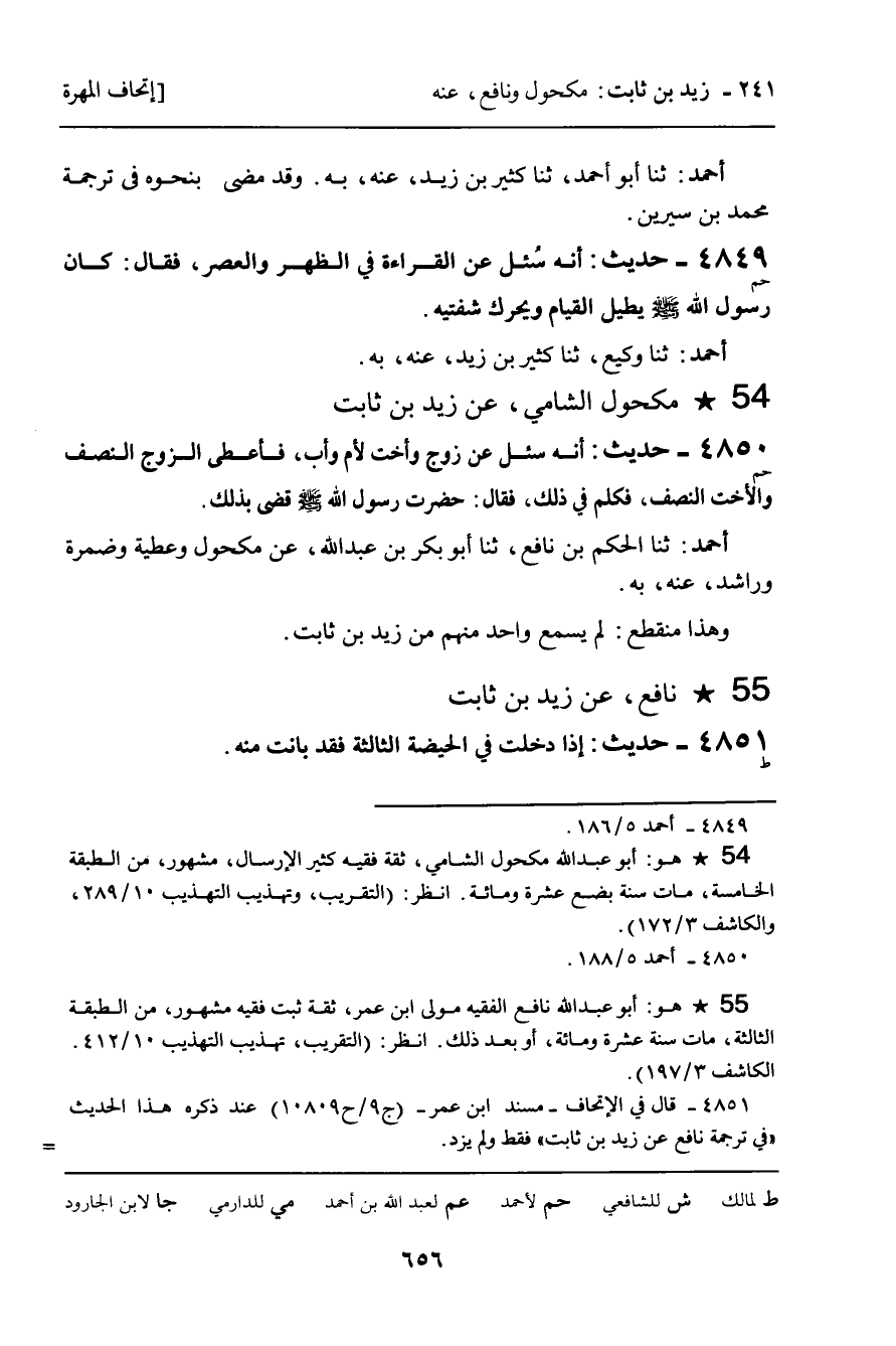 ـ مَكْحُولٌ الشَّامِيُّ، عَنْ زَيْدِ بْنِ ثَابِتٍ.