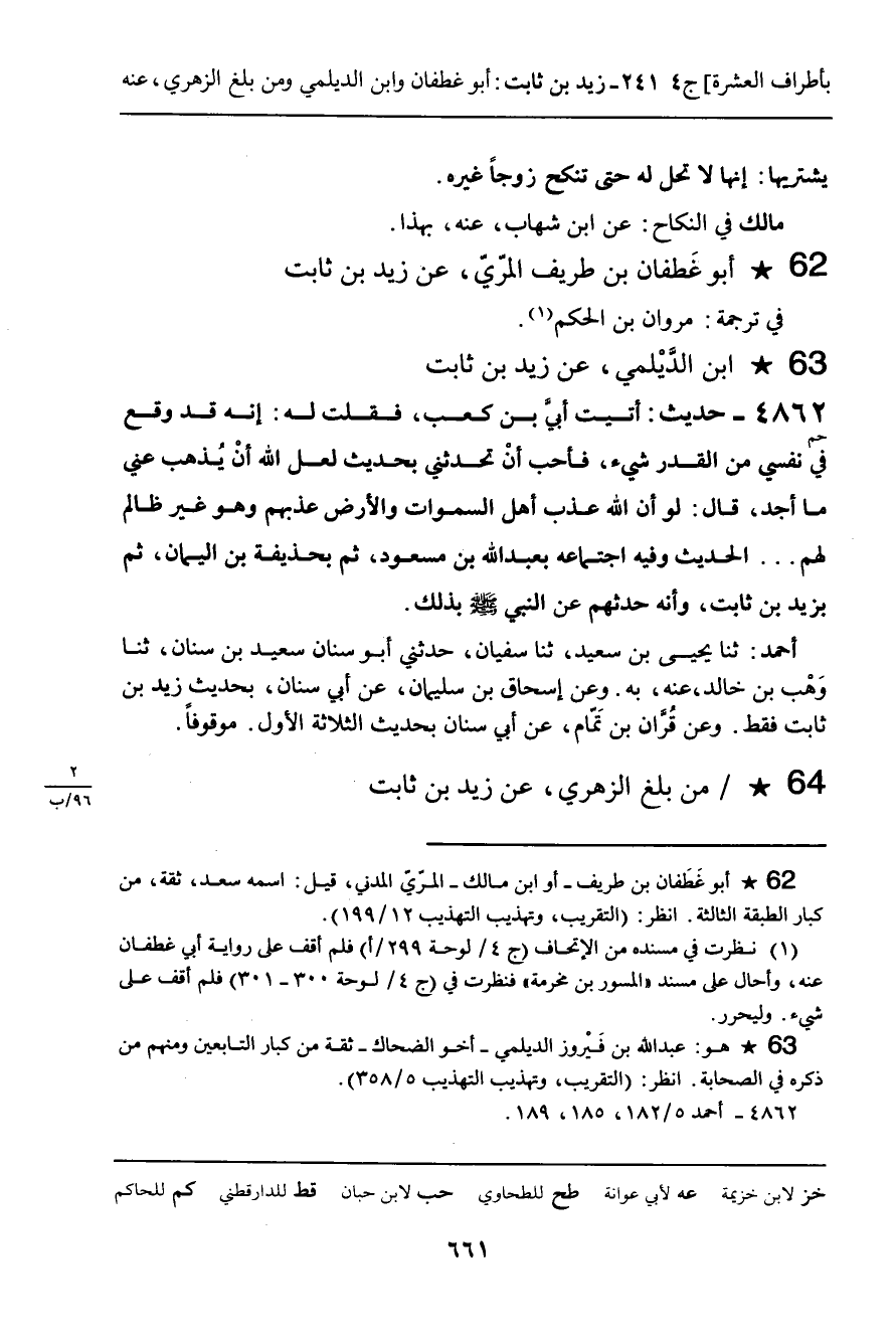ـ أَبُو غَطْفَانَ بْنُ طَرِيفٍ الْمُرِّيُّ، عَنْ زَيْدِ بْنِ ثَابِتٍ.