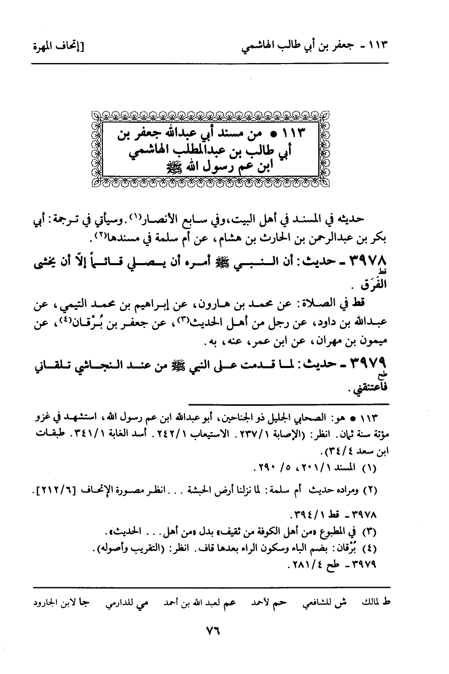 113 ـ مِنْ مُسْنَدِ أَبِي عَبْدِ اللَّهِ جَعْفَرِ بْنِ أَبِي طَالِبِ بْنِ عَبْدِ الْمُطَّلِبِ الْهَاشِمِيِّ