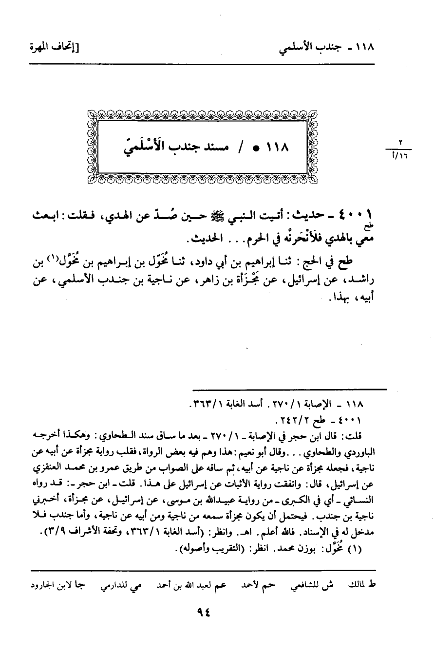 118 ـ مُسْنَدُ جُنْدُبٍ الأَسْلَمِيُّ
