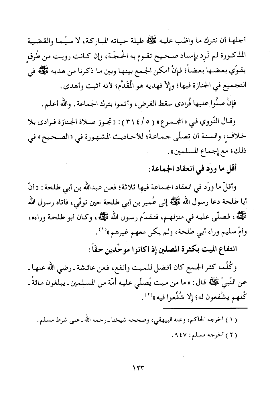 أجلها أن نترك ما واظب عليه - صَلَّى اللَّهُ عَلَيْهِ وَسَلَّمَ - طيلة حياته المباركة، لا سيّما والقضية المذكورة لم تَرِد بإِسناد صحيح تقوم به الحُجّة، وإن كانت رويت من طُرقٍ يقوّي بعضها بعضاً؛ فإِنْ أمكن الجمع بينها وبين ما ذكرنا من هديه - صَلَّى اللَّهُ عَلَيْهِ وَسَلَّمَ - في التجميع في الجنازة فبها؛ وإِلا فهديه هو المُقَدَّم؛ لأنه أثبت وأهدى.
