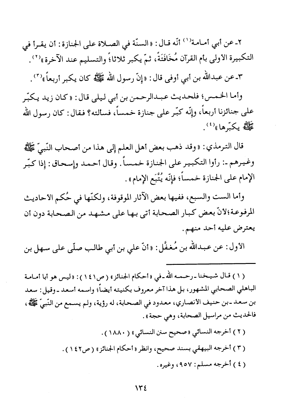 3 - عن عبد الله بن أبي أوفى قال: "إِنّ رسول الله - صَلَّى اللَّهُ عَلَيْهِ وَسَلَّمَ - كان يكبر أربعاً" (¬3).