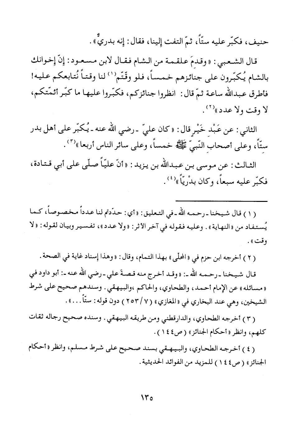 (¬4) أخرجه الطحاوي، والبيهقي بسند صحيح على شرط مسلم، وانظر "أحكام الجنائز" (ص 144) للمزيد من الفوائد الحديثية.