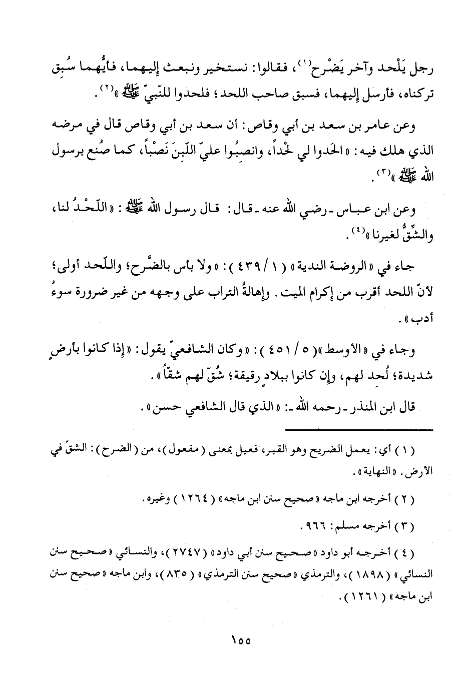وعن ابن عباس -رضي الله عنه- قال: قال رسول الله - صَلَّى اللَّهُ عَلَيْهِ وَسَلَّمَ -: "اللّحْدُ لنا، والشِّقُّ لغيرنا" (¬4).