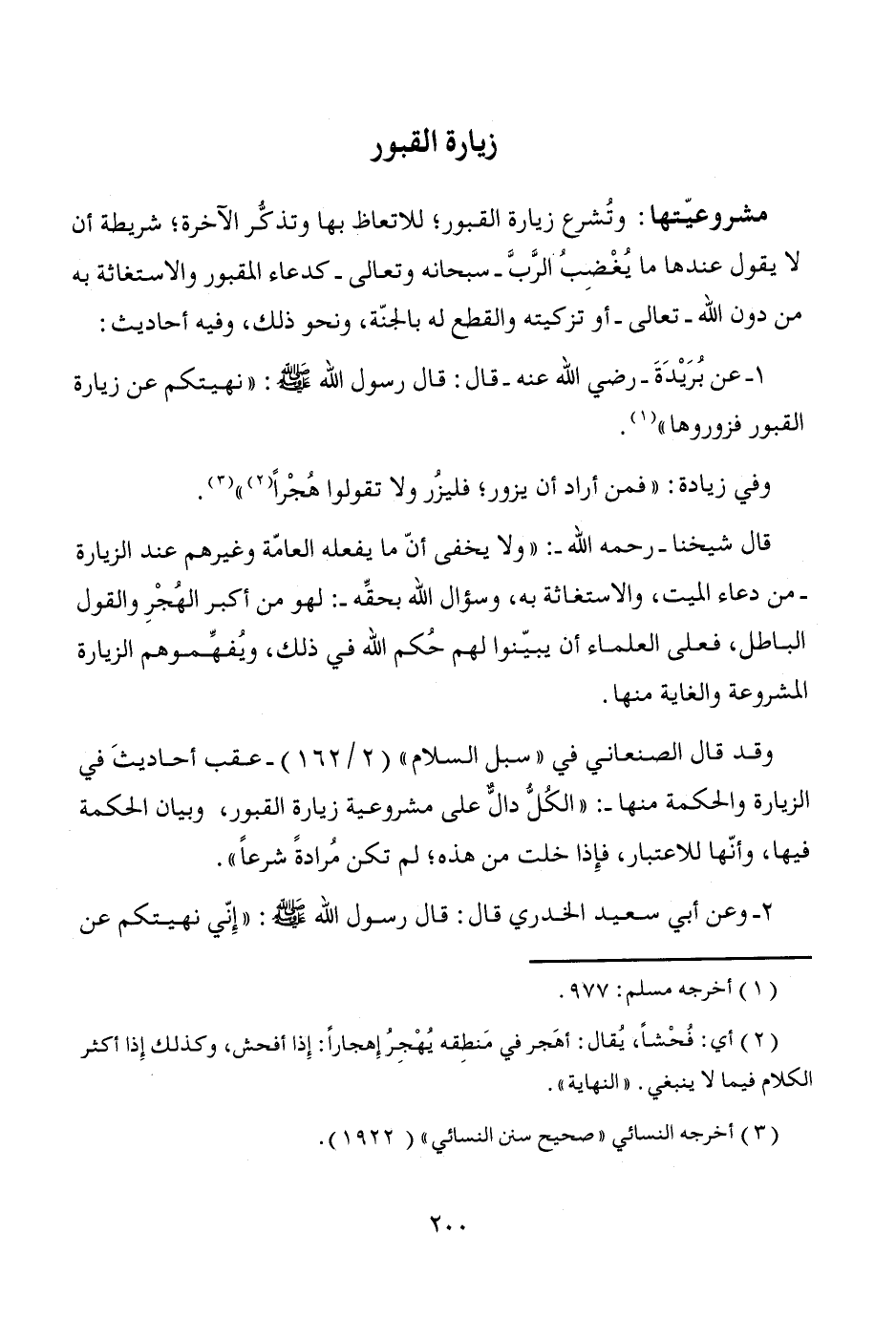 1 - عن بُرَيْدَةَ -رضي الله عنه- قال: قال رسول الله - صَلَّى اللَّهُ عَلَيْهِ وَسَلَّمَ -: "نهيتكم عن زيارة القبور فزوروها" (¬1).