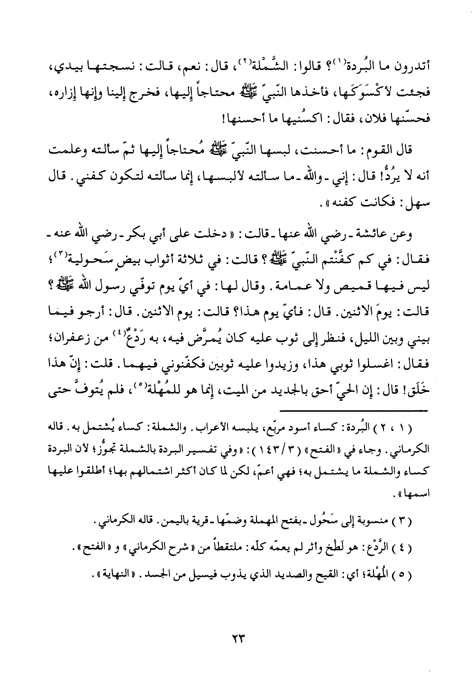 (¬1) و (¬2) البُردة: كساء أسود مربّع، يلبسه الأعراب. والشملة: كساء يُشتمل به. قاله الكرماني. وجاء في "الفتح" (3/ 143): "وفي تفسير البردة بالشملة تجوُّز؛ لأن البردة كساء والشملة ما يشتمل به؛ فهي أعمّ، لكن لما كان أكثر اشتمالهم بها؛ أطلقوا عليها اسمها".