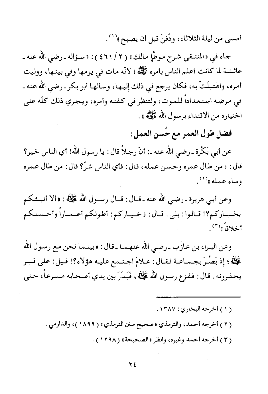 عن أبي بَكْرة -رضي الله عنه-: أنّ رجلاً قال: يا رسول الله! أي الناس خير؟ قال: "من طال عمره وحسن عمله، قال: فأي الناس شرّ؟ قال: من طال عمره وساء عمله" (¬2).