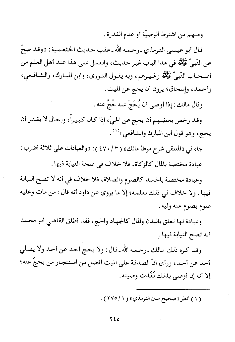 قال أبو عيسى الترمذي -رحمه الله- عقب حديث الخثعمية: "وقد صحّ عن النّبيّ - صَلَّى اللَّهُ عَلَيْهِ وَسَلَّمَ - في هذا الباب غير حديث، والعمل على هذا عند أهل العلم من أصحاب النّبيّ - صَلَّى اللَّهُ عَلَيْهِ وَسَلَّمَ - وغيرهم، وبه يقول الثوري، وابن المبارك، والشافعي، وأحمد، وإسحاق؛ يرون أن يحج عن الميت.