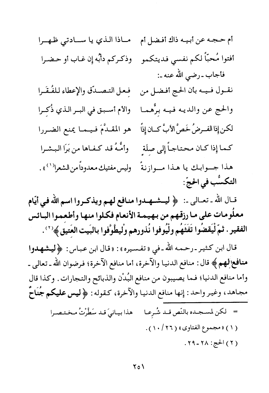 نقول فيه بأن الحج أفضل من ... فِعل التصدّق والإِعطاء للفُقَرا