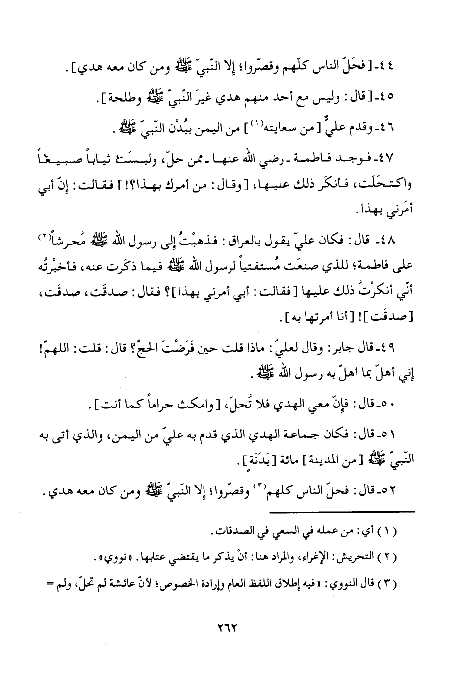 52 - قال: فحلّ الناس كلهم (¬3) وقصّروا؛ إِلا النّبيّ - صَلَّى اللَّهُ عَلَيْهِ وَسَلَّمَ - ومن كان معه هدي.