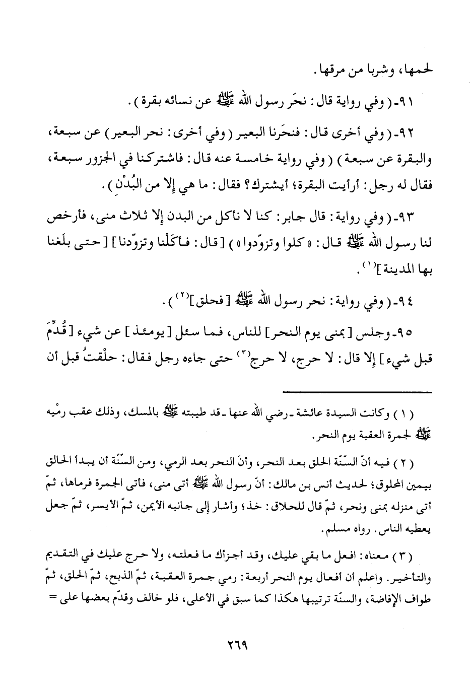 95 - وجلس [بمنى يوم النحر] للناس، فما سئل [يومئذ] عن شيء [قُدِّمَ قبل شيء] إِلا قال: لا حرج، لا حرج (¬3) حتى جاءه رجل فقال: حلْقتُ قبل أن