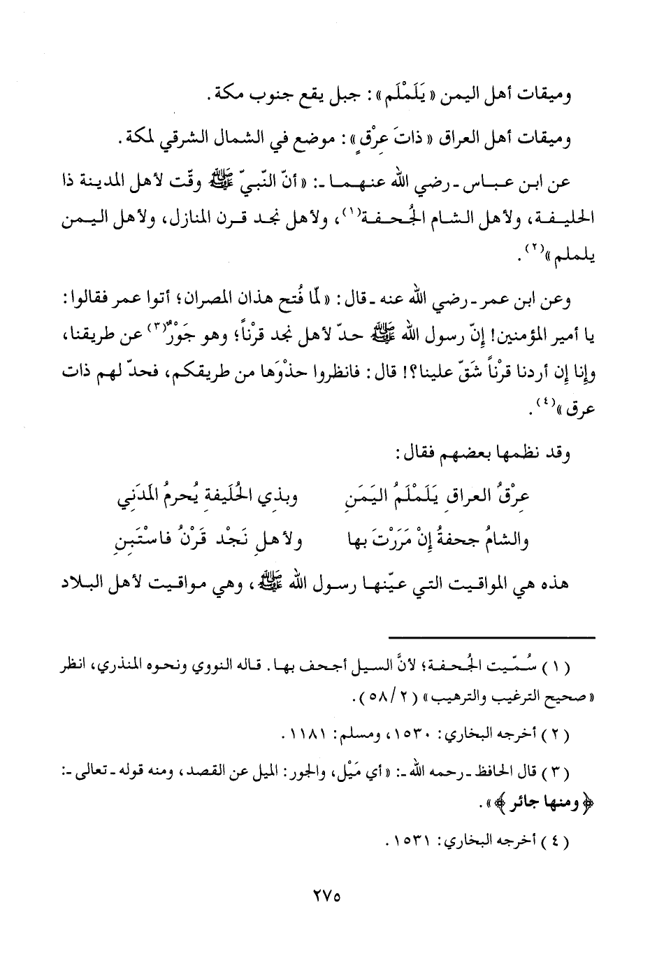 عِرْقُ العراقِ يَلَمْلَمُ اليَمَنِ ... وبذِي الحُلَيفةِ يُحرمُ المدَنِي