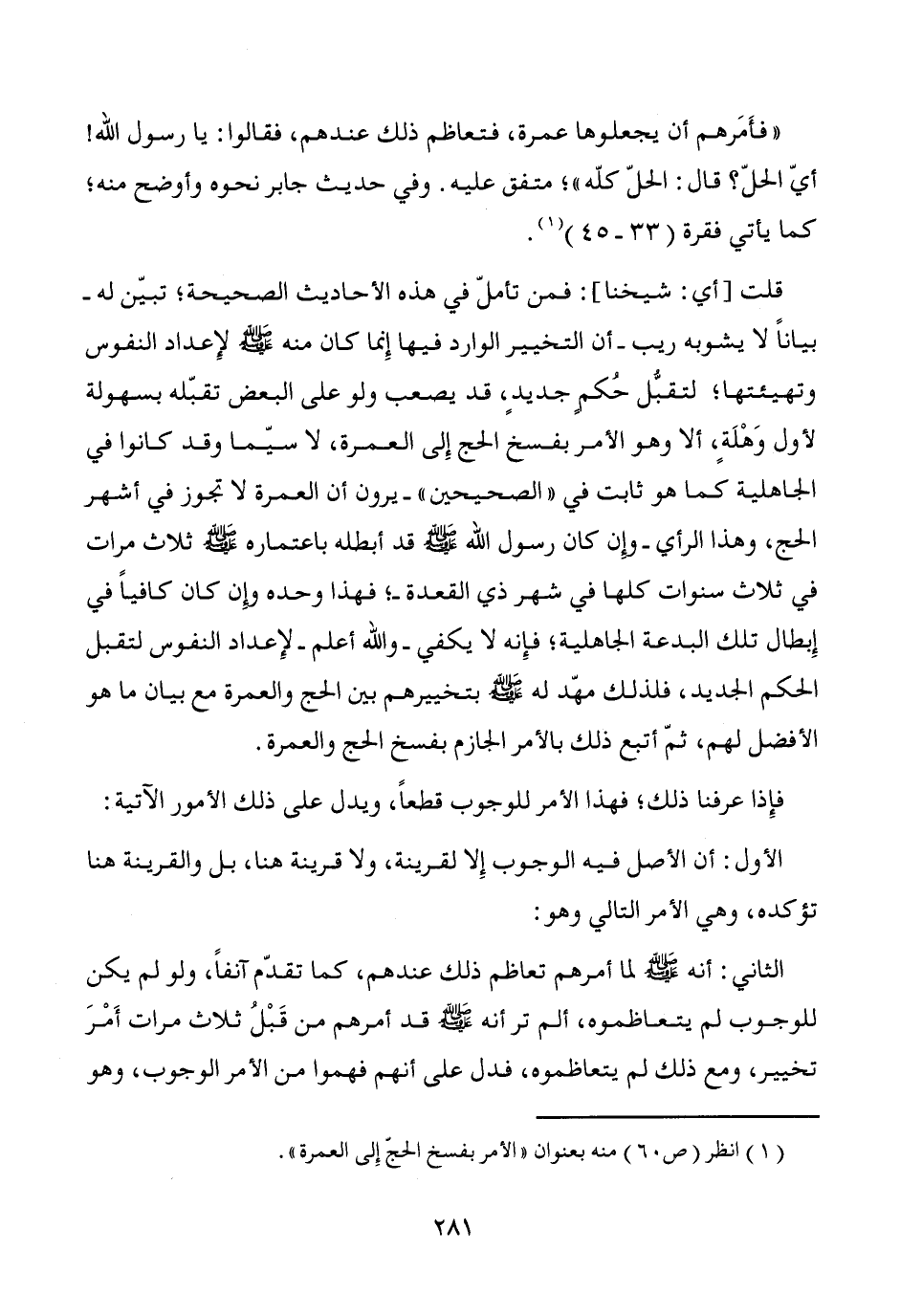 (¬1) انظر (ص 60) منه بعنوان "الأمر بفسخ الحجّ إِلى العمرة".