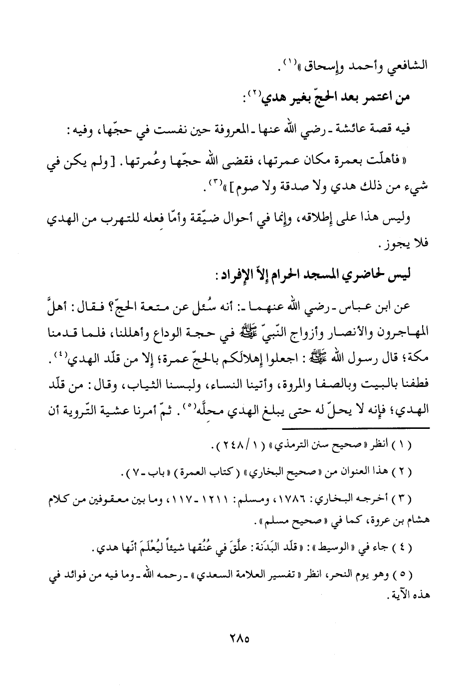 ليس لحاضري المسجد الحرام إِلاّ الإِفراد: