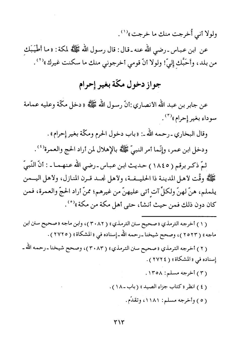 وقال البخاري -رحمه الله-: "باب دخول الحرم ومكّة بغير إِحرام".