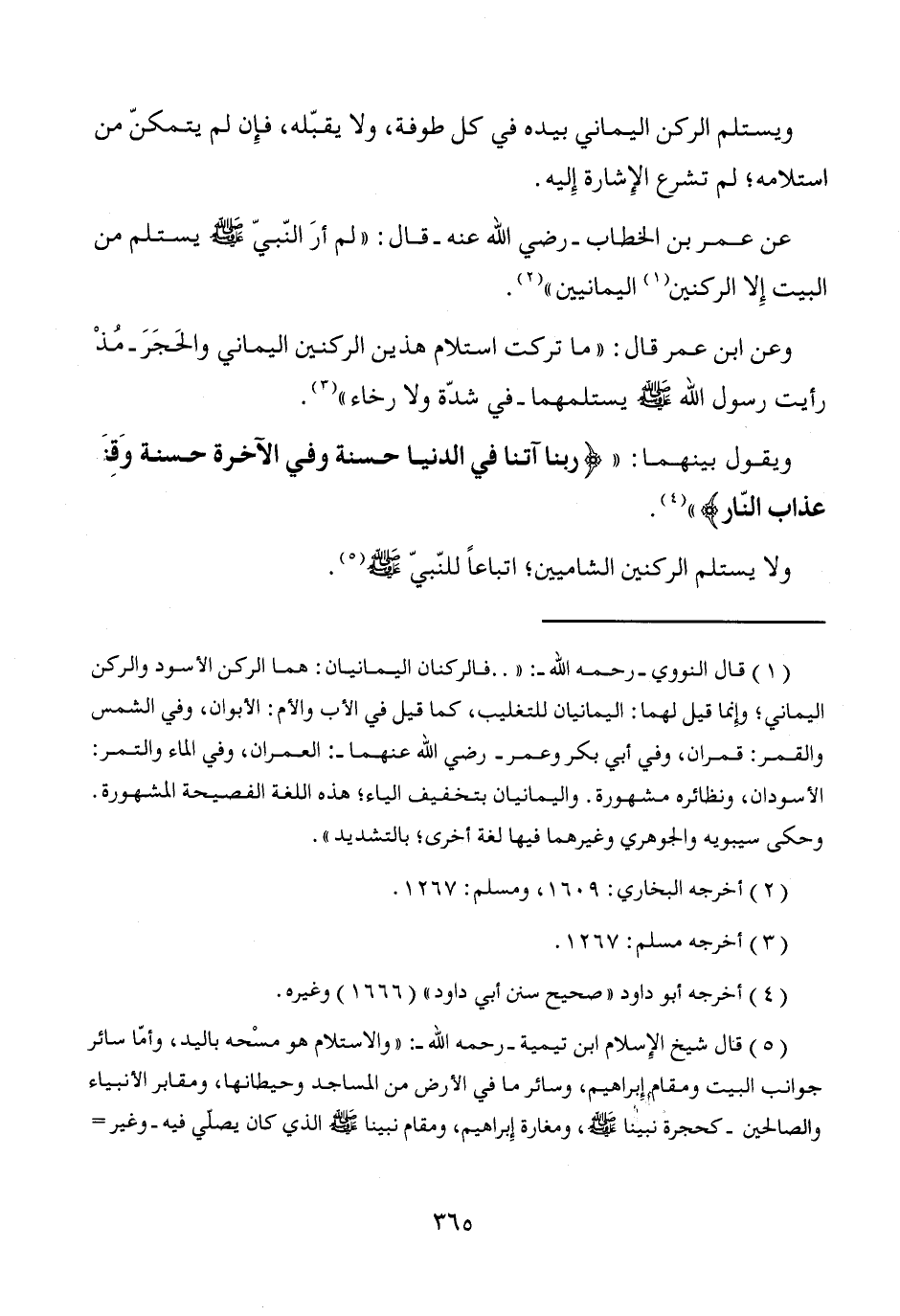 (¬5) قال شيخ الإِسلام ابن تيمية -رحمه الله-: "والاستلام هو مسْحه باليد، وأمّا سائر جوانب البيت ومقام إِبراهيم، وسائر ما في الأرض من المساجد وحيطانها، ومقابر الأنبياء والصالحين -كحجرة نبينا - صَلَّى اللَّهُ عَلَيْهِ وَسَلَّمَ -، ومغارة إِبراهيم، ومقام نبينا - صَلَّى اللَّهُ عَلَيْهِ وَسَلَّمَ - الذي كان يصلّي فيه- وغير =