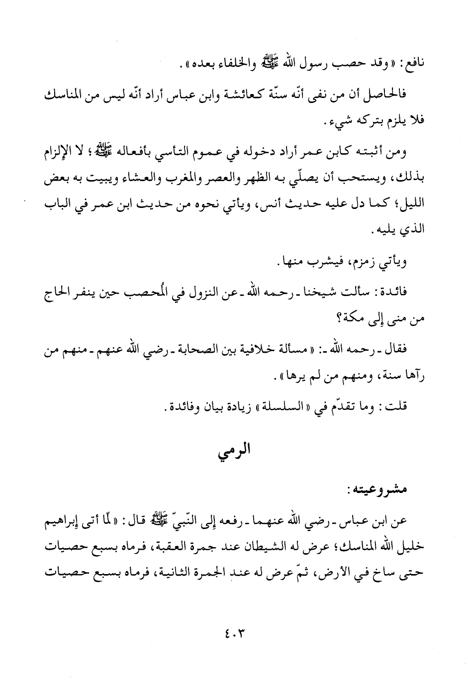 فائدة: سألت شيخنا -رحمه الله- عن النزول في المُحصب حين ينفر الحاج من منى إِلى مكة؟