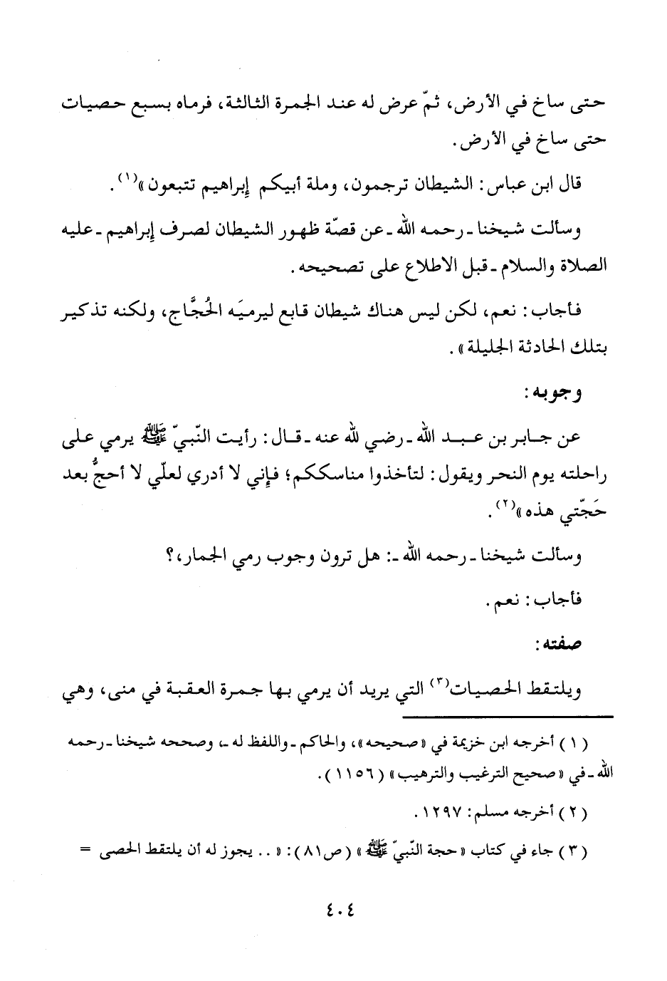 فأجاب: نعم، لكن ليس هناك شيطان قابع ليرميَه الحُجَّاج، ولكنه تذكير بتلك الحادثة الجليلة".