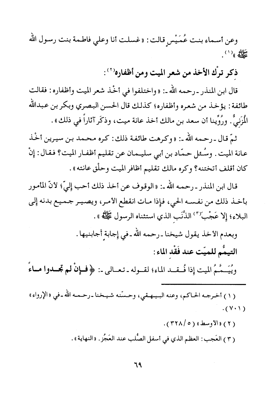 قال ابن المنذر -رحمه الله-: "الوقوف عن أخذ ذلك أحب إِليّ؛ لأنّ المأمور بأخذ ذلك من نفسه الحي، فإِذا مات انقطع الأمر، ويصير جميع بدنه إِلى البلاء؛ إِلا عَجْبَ (¬3) الذَّنَبِ الذي استثناه الرسول - صَلَّى اللَّهُ عَلَيْهِ وَسَلَّمَ -".