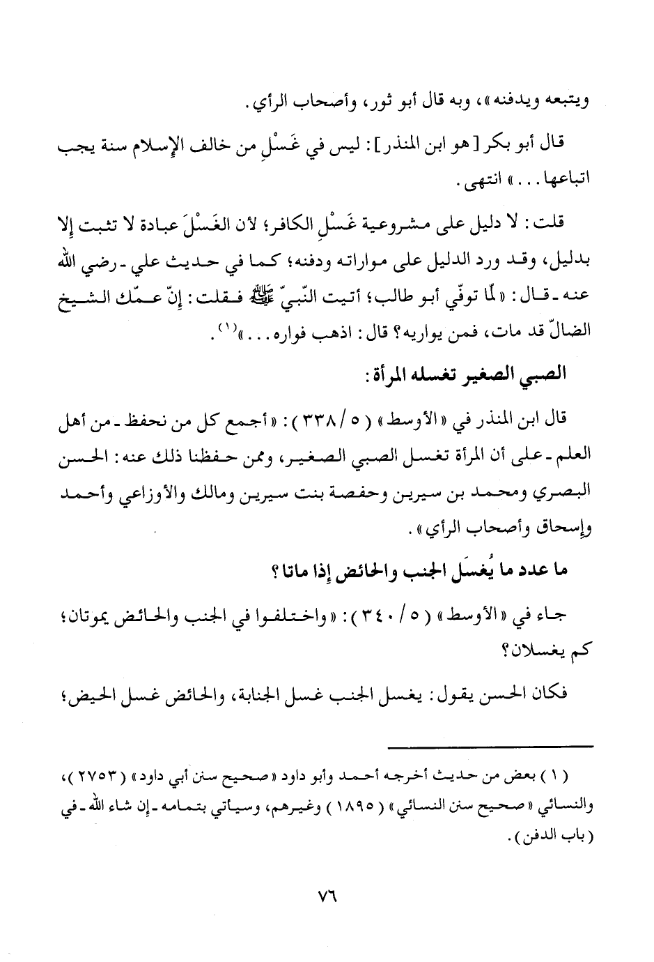 جاء في "الأوسط" (5/ 340): "واختلفوا في الجنب والحائض يموتان؛ كم يغسلان؟