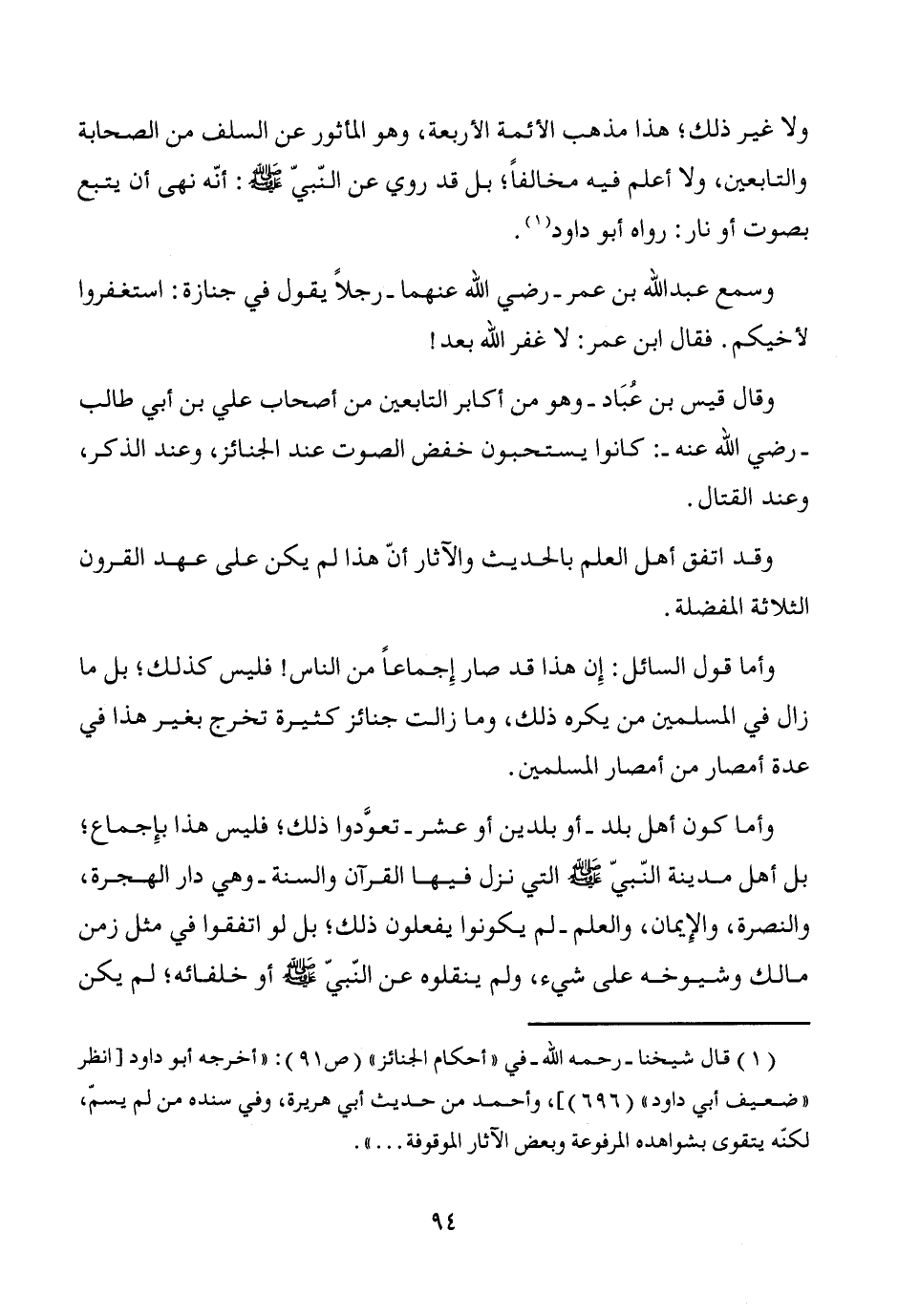 (¬1) قال شيخنا -رحمه الله- في "أحكام الجنائز" (ص 91): "أخرجه أبو داود [انظر "ضعيف أبي داود" (696)]، وأحمد من حديث أبي هريرة، وفي سنده من لم يسمّ، لكنّه يتقوى بشواهده المرفوعة وبعض الآثار الموقوفة ... ".