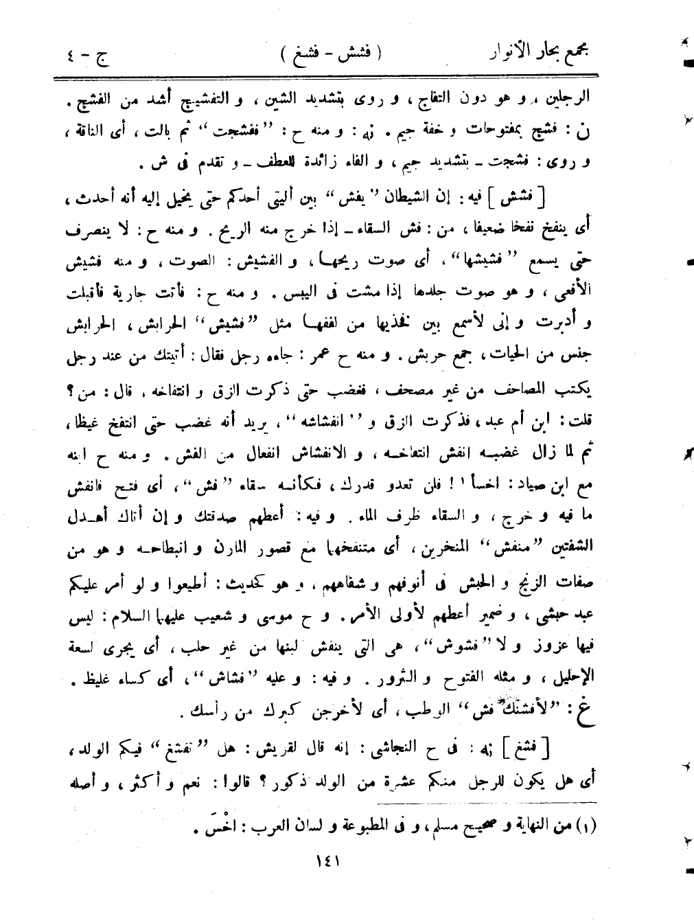 [فشغ] نه: في ح النجاشي: إنه قال لقريش: هل "تفشغ" فيكم الولد، أي هل يكون للرجل منكم عشرة من الولد ذكور؟ قالوا: نعم وأكثر، وأصله