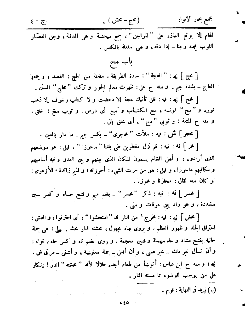 [محح] نه: فيه: فلن تأتيك حجة إلا دحضت ولا كتاب زخرف إلا ذهب نوره و"مح" لونه، مح الكتاب وأمح أي درس، وثوب مح: خلق. ومنه ح المتعة: وثوبي "مح"، أي خلق بال.