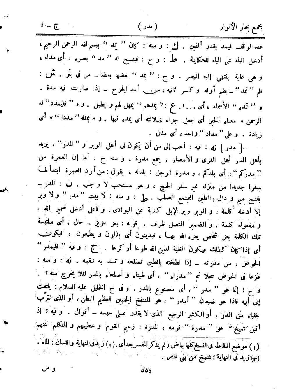 عند الوقف فيمد بقدر ألفين. ك: ومنه: كان "يمد" ببسم الله الرحمن الرحيم، أدخل الباء على الباء للحكاية. ط: وح: فيفسح له "مد" بصره، أي مداه، وهي غاية ينتهي إليه البصر. وح: "يمد" بعضها بعضًا- مر في بئر. ش: فلم "تمد"- بضم أوله وكسر ثانيه، من أمد الجرح- إذا صارت فيه مدة. و"تمده" الأسماء، أي ..... غ: "يمدهم" يمهل لهم ويطيل. و""فليمدد" له الرحمن" معناه الخبر أي جعل جزاء ضلالته أي يمده فيها. و"بمثله "مددا"" أي زيادة. وعلى "مداد" واحد، أي مثال.