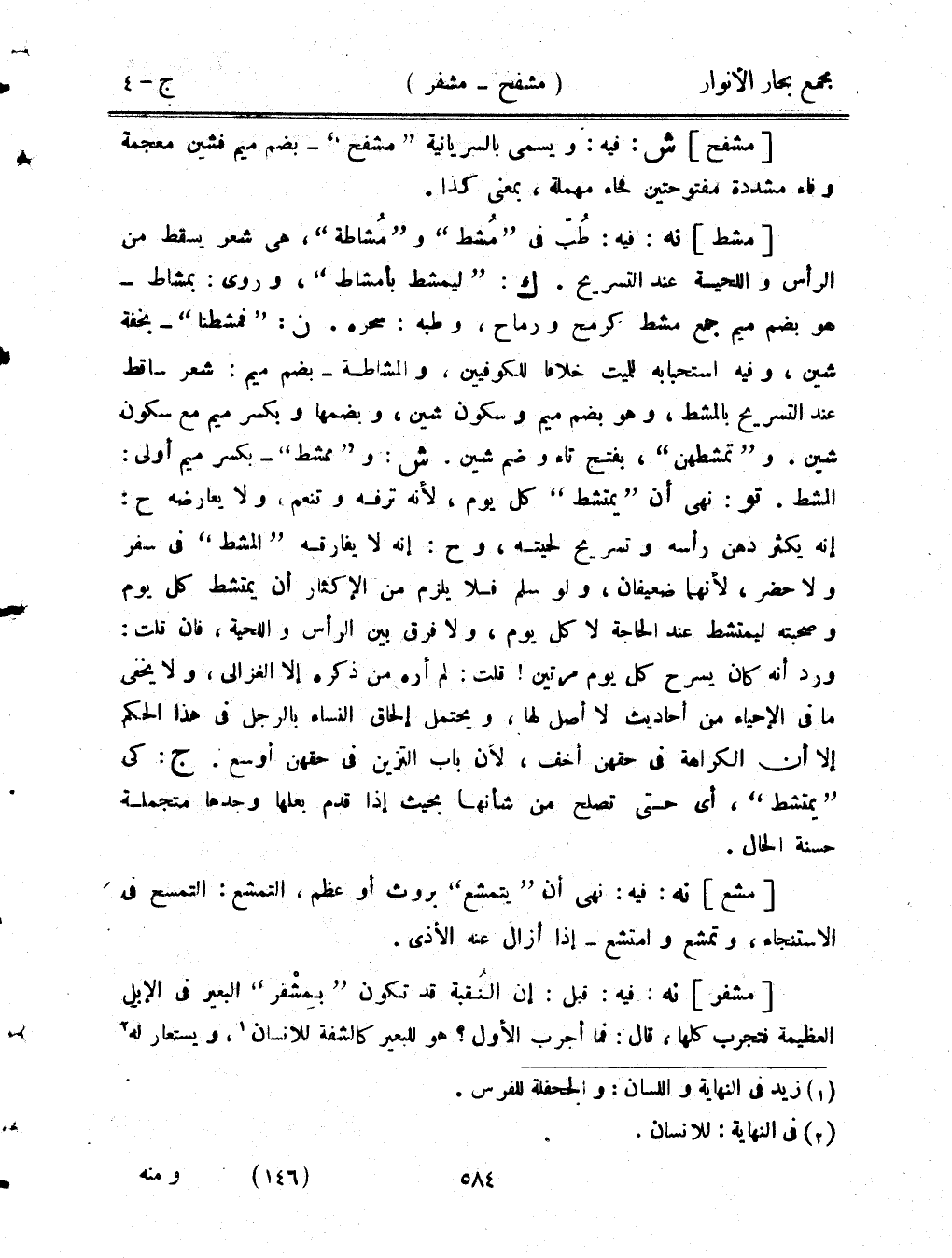 [مشع] نه: فيه: نهى أن "يتمشع" بروث أو عظم، التمشع: التمسح في الاستنجاء، وتمشع وامتشع- إذا أزال عنه الأذى.