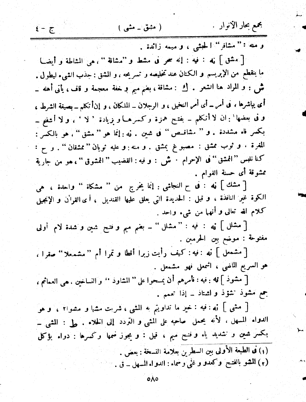 [مشك] نه: في ح النجاشي: إنما يخرج من "مشكاة" واحدة، هي الكوة غير النافذة، وقيل: الحديدة التي يعلق عليها القنديل، أي القرآن والإنجيل كلام الله تعالى وأنهما من شيء واحد.