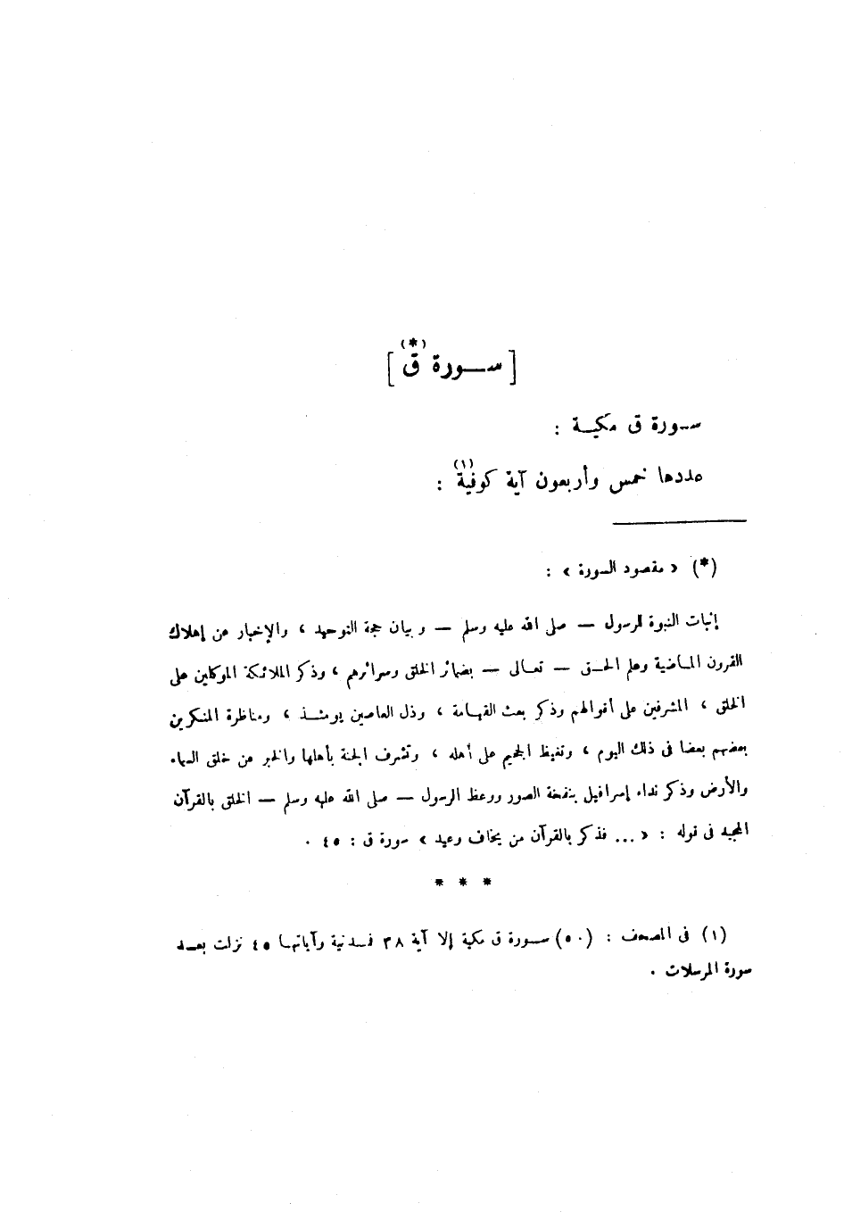 (2) فى المصحف: (50) سورة ق مكية إلا آية 38 فمدينة وآياتها 45 نزلت بعد سورة المرسلات.