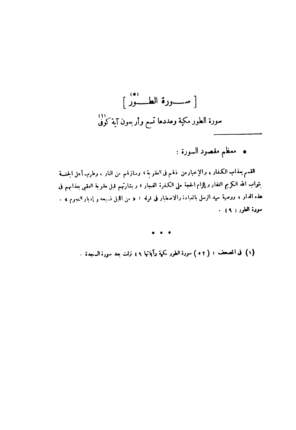 (2) فى المصحف: (52) سورة الطور مكية وآياتها 49 نزلت بعد سورة السجدة.