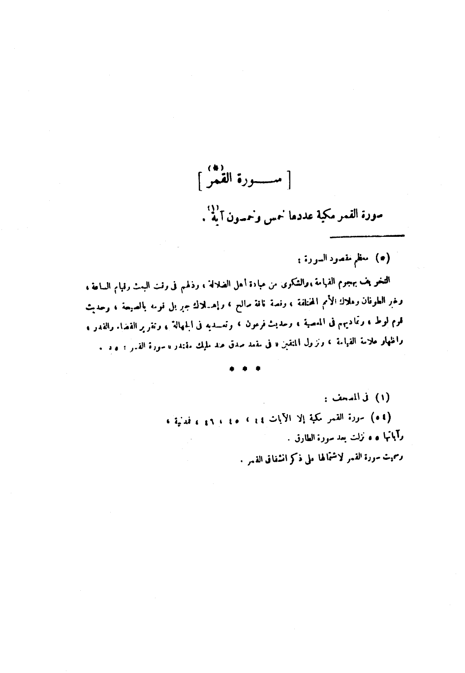 (54) سورة القمر مكية إلا الآيات 44، 45، 46، فمدنية، وآياتها 55 نزلت بعد سورة الطارق.