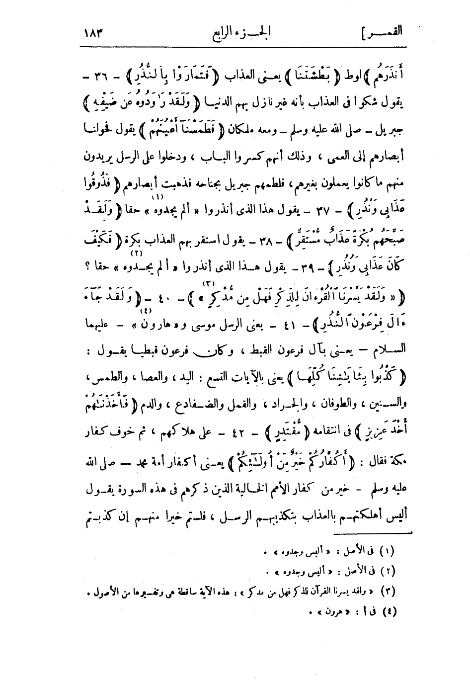 (3) «وَلَقَدْ يَسَّرْنَا الْقُرْآنَ لِلذِّكْرِ فَهَلْ مِنْ مُدَّكِرٍ» : هذه الآية ساقطة هي وتفسيرها من الأصول.
