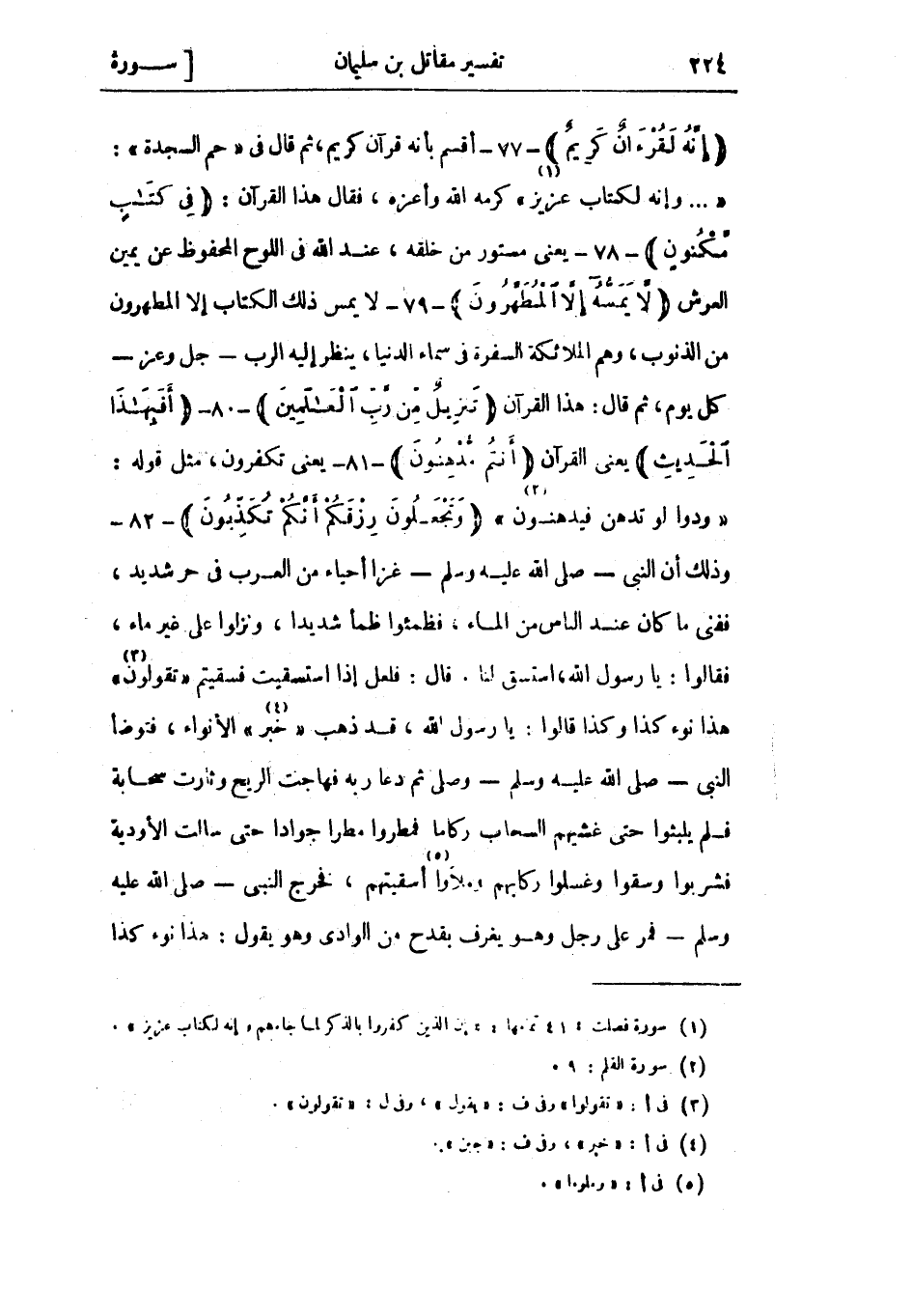 « ... وَإِنَّهُ لَكِتابٌ عَزِيزٌ» «1» كرمه الله وأعزه، فقال هذا القرآن: فِي كِتابٍ مَكْنُونٍ- 78- يعني مستور من خلقه، عند الله في اللوح المحفوظ عن يمين العرش لا يَمَسُّهُ إِلَّا الْمُطَهَّرُونَ- 79- لا يمس ذلك الكتاب إلا المطهرون من الذنوب، وهم الملائكة السفرة في سماء الدنيا، ينظر إليه الرب- جل وعز- كل يوم، ثم قال: هذا القرآن تَنْزِيلٌ مِنْ رَبِّ الْعالَمِينَ- 80- أَفَبِهذَا الْحَدِيثِ يعني القرآن أَنْتُمْ مُدْهِنُونَ- 81- يعني تكفرون، مثل قوله: