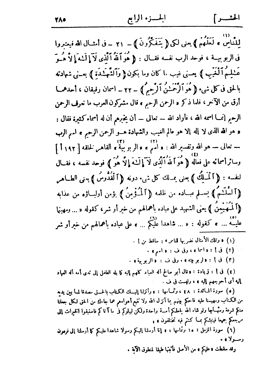 (5) سورة المائدة: 48، وتمامها: «وَأَنْزَلْنا إِلَيْكَ الْكِتابَ بِالْحَقِّ مُصَدِّقاً لِما بَيْنَ يَدَيْهِ مِنَ الْكِتابِ وَمُهَيْمِناً عَلَيْهِ فَاحْكُمْ بَيْنَهُمْ بِما أَنْزَلَ اللَّهُ وَلا تَتَّبِعْ أَهْواءَهُمْ عَمَّا جاءَكَ مِنَ الْحَقِّ لِكُلٍّ جَعَلْنا مِنْكُمْ شِرْعَةً وَمِنْهاجاً وَلَوْ شاءَ اللَّهُ لَجَعَلَكُمْ أُمَّةً واحِدَةً وَلكِنْ لِيَبْلُوَكُمْ فِي مَا آتاكُمْ فَاسْتَبِقُوا الْخَيْراتِ إِلَى اللَّهِ مَرْجِعُكُمْ جَمِيعاً فَيُنَبِّئُكُمْ بِما كُنْتُمْ فِيهِ تَخْتَلِفُونَ» .