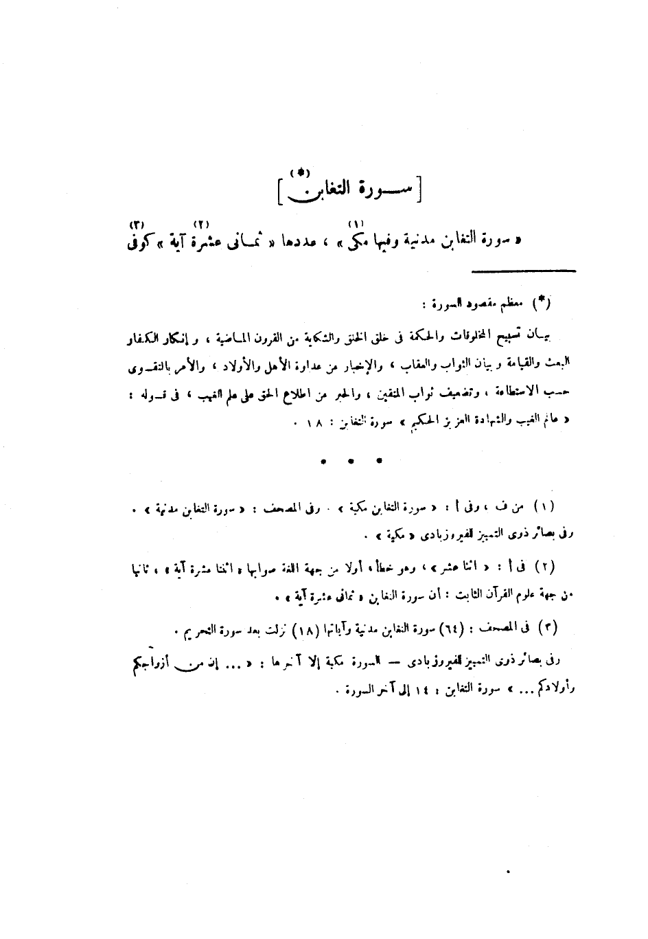 (4) فى المصحف: (64) سورة التغابن مدنية وآياتها (18) نزلت بعد سورة التحريم.