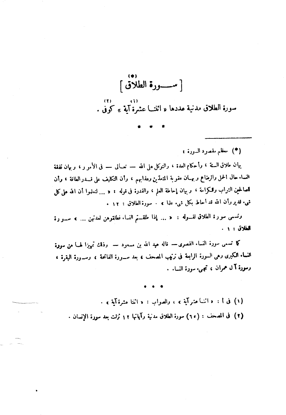 (3) فى المصحف: (65) سورة الطلاق مدنية وآياتها 12 نزلت بعد سورة الإنسان. [.....]