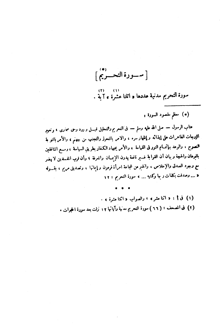 (3) فى المصحف: (66) سورة التحريم مدنية وآياتها 12 نزلت بعد سورة الحجرات.