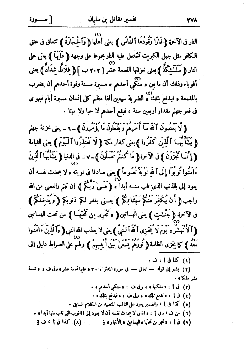 (2) يشير إلى قوله- تعالى- فى سورة المدثر: 30 «عَلَيْها تِسْعَةَ عَشَرَ» وفى ف: «تسعة عشر ملكا» .