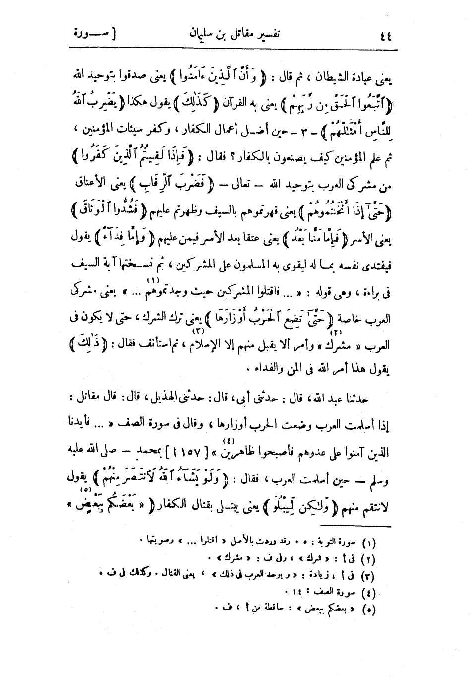(1) سورة التوبة: 5، وقد وردت بالأصل «اقتلوا ... » وصوبتها.