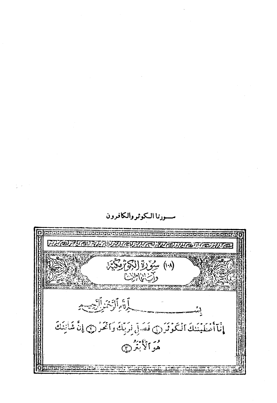 إِنَّا أَعْطَيْناكَ الْكَوْثَرَ (1) فَصَلِّ لِرَبِّكَ وَانْحَرْ (2) إِنَّ شانِئَكَ هُوَ الْأَبْتَرُ (3)